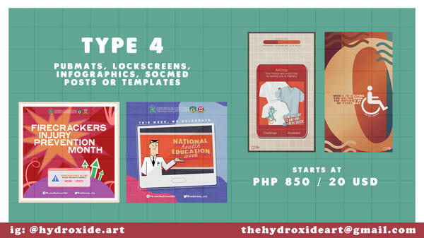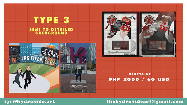 1. Turnaround time is around 2+ weeks, depending on the workload. The artist will update the client if there will be any delays. If the client wishes to have their artwork within 3-10 days, there will be an additional fee of P250 or 10-20USD (not always applicable)2. Only 3 revisions are given. Succeeding revisions are subject to additional P50 or 3USD3. Only 1-2 final output will be sent thru email. Additional version of the commissioned work such as different color palette or element placement etc., is subject to additional charge.