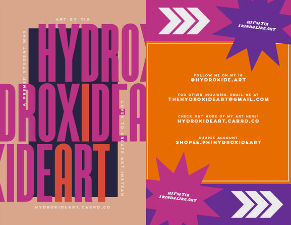 Hydroxideart stickers are now available in La Local UST The One in Espana, Love Letter Lounge in Greenhills & After School Club in Lacson Manila.Won in #LifetimeArtfest in Twitter hosted by Ben&Ben (2020)Opened online shop for stickers in shopee (2020-2024)Had a meetup and personally sold own designed stickers to Ben&Ben before gig (2018)Design was chosen by Project Taft for a shirt fundraiser (2018)